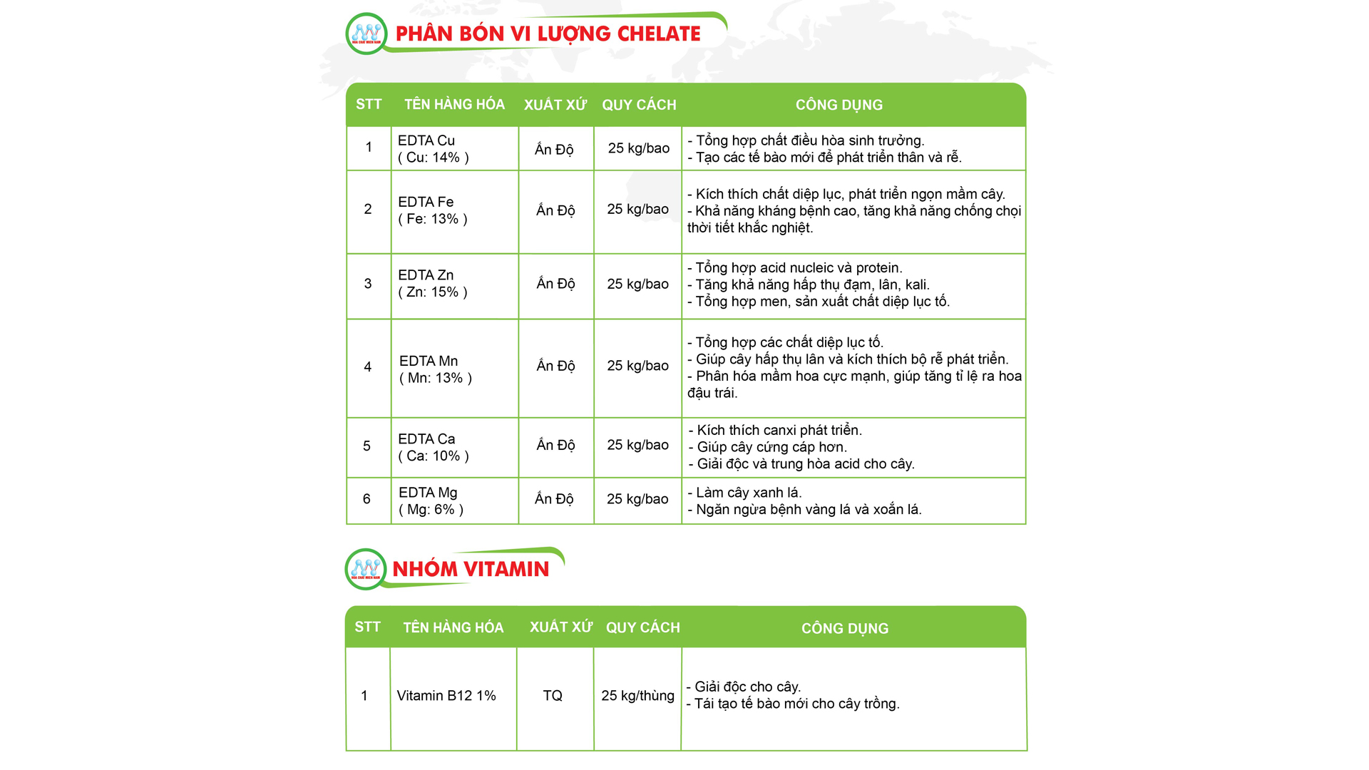 • Nhóm phân bón vi lượng Chelate