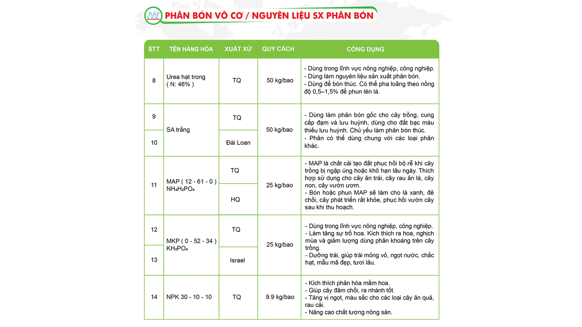 • Nhóm phân bón vô cơ