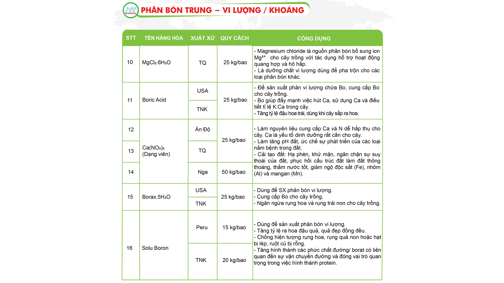 • Nhóm phân bón trung – vi lượng/khoáng